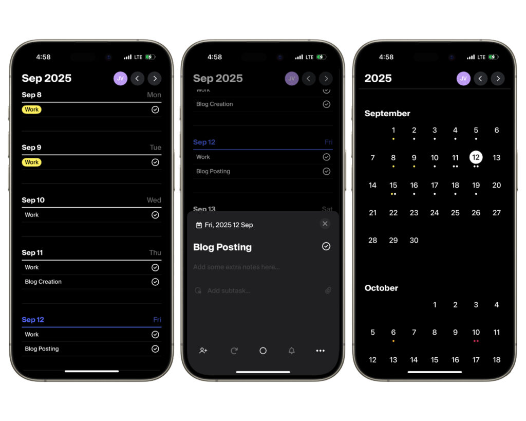 Tweek is literally just a weekly planner. That’s it. Open it up and you see your week, space for tasks, no frills. It feels like writing on a paper planner, just on your phone. That simplicity is why I keep using it.